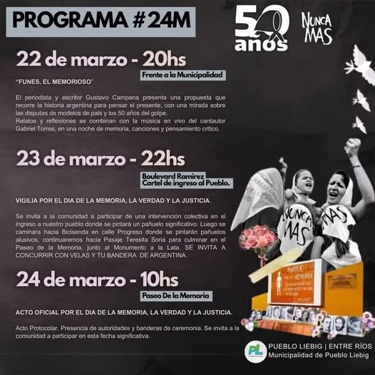 Liebig, 16 de marzo de 2026 Pueblo Liebig conmemorará el Día de la Memoria con tres días de actividades A 50 años del [...]