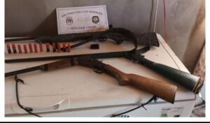 En el lugar se procedió al comiso por Ley de Caza; de 17 astas de ciervos de distintos tamaños y el secuestro de un rifle calibre 22 Magnum, dos escopeta calibre 28 y 14, con cartuchos varios.