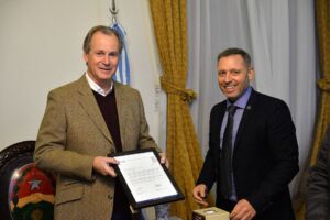 “Entre Ríos tomó una iniciativa, que podemos decir que es un modelo para varias provincias, pero también a nivel mundial, en lo que es la legislación en contra del odio, tomando en cuenta como base de la definición de la Alianza Internacional para la Memoria del Holocausto (IHRA), que es el movimiento que tiene una definición específica del antisemitismo y esta ley está basada en esta misma”, comentó y acotó que “entonces, el día de hoy queríamos hacerle un reconocimiento al señor gobernador por todo ese esfuerzo y por ser, en ese sentido, el líder que está llevando adelante este proceso junto con las entidades locales y nacionales de la comunidad judía en Argentina, con la representación del doctor Pablo Soskin”.