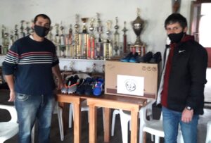 En la visita se procedió a la entrega de artículos para la práctica de fútbol, el deporte que se destaca en el Club, como así también de calzados y otros materiales. El “Hugues Fútbol Club”, fue incorporado en el transcurso del año 2020 en el programa de Formadores Deportivos, realizándose por intermedio de la Secretaría de Desarrollo Comunitario un acuerdo que permitió a la Escuela Nº 8 “3 de Febrero” contar con un profesor de Educación Física, por lo que el beneficio se extiende a toda la comunidad.
