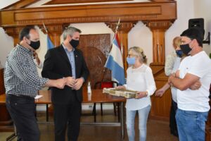 Recibieron el presente sus hijos María Alicia, directora de la radio, Laura y Lucas, de manos del Presidente Municipal, José Luis Walser, y del Vicepresidente Municipal, Ramiro Favre. Estuvieron presentes además concejales de ambos bloques y funcionarios municipales.