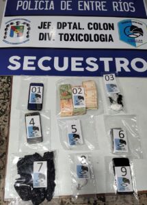 En una operación conjunta realizada en horas de la noche de este sábado, el personal de la División de Toxicología, en colaboración con la Sección Guardia Especial, ambas dependientes de esta Jefatura Departamental, ejecutó un allanamiento en una residencia ubicada en Avenida Presidente Perón de esta ciudad. Este procedimiento se llevó a cabo en cumplimiento de un oficio de allanamiento, registro domiciliario y requisa proveniente del Juzgado de Garantías con jurisdicción en este Departamento, en relación a una causa que se encuentra en trámite ante la Unidad Fiscal de Colón, bajo la dirección del Dr. Blanc Sebastián.
