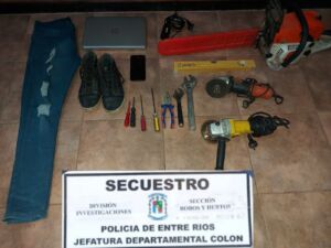 En virtud de una investigación. Iniciada a raíz de una denuncia radicada el martes 18 del corriente mes, personal de esta Jefatura Departamental, abocado a la pesquisa, luego de analizar los indios recolectados en el lugar de los hechos, logran establecer la identidad del supuesto autor. Atento a lo antes narrado se solicita orden de allanamiento para una vivienda, ubicada sobre calle María Isabel Fernández de la ciudad de Colón, lugar donde se procedió al formal secuestro de varios elementos que guardan relación con la causa, como así también el traslado desde esta propiedad hasta esta dependencia, de un joven de 21 años para su correcta identificación, quien queda supeditado a la causa