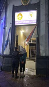 Ante esta situación se procedió a su inmediata aprehensión y con conocimiento de la fiscal de turno, la Dra. Micaela Di Pretoro, se trasladó a este sujeto hasta la Jefatura Departamental, donde quedó alojado a disposición de las autoridades judiciales intervinientes.
