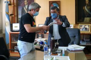 Mantuvo una reunión en el despacho de Martín Oliva con quien luego presentaron la Fiesta Nacional de la Artesanía ante medios locales junto a Turismo de esa localidad