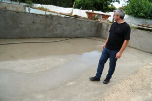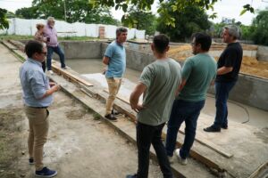 El intendente de Colón junto a integrantes de su equipo técnico y del directorio de la Caja de Jubilaciones, recorrió los trabajos que se realizan en el parque Quirós donde se construyen piscinas.