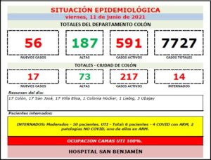Ampliación del reporte epidemiológico de Entre Ríos del viernes 11/6/21