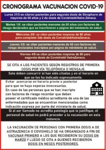 EL HOSPITAL SAN BENJAMIN DIÓ A CONOCER EL CRONOGRAMA DE VACUNACIÓN PARA COVID-19 DE ESTA SEMANA