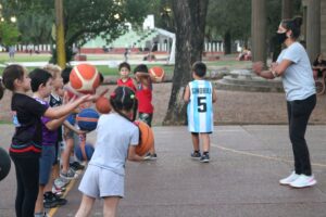 Básquet en el playón del Parque Quirós se dicta los lunes, martes, jueves y viernes de 18 a 20 con los profesores Andrea Sander y Pablo Blanc. Y en el playón Rocamora los martes y viernes y en el playón San Francisco lunes y miércoles a las 17,30, y para adultos en la cancha del Parque Quirós los martes y jueves a las 20 con el entrenador Brian Díaz.