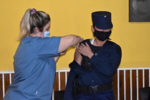 Más de 100 agentes de policía fueron vacunados con la segunda dosis contra Covid-19 el pasado martes, por parte del equipo de Salud Municipal de Colón se encuentra aplicando las vacunas que provee el Hospital en zonas rurales, a personas postradas o a personal específico.