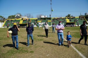 El pasado domingo se jugó la primera fecha de la Copa Ciudad de Colón en la cancha de Club Ñapindá que contó con la participación del Intendente José Luis Walser para dar el puntapié inicial del partido entre Defensores y Ñapindá, que terminó en favor del primero por 2 a 1. Estuvieron presentes los presidentes de los clubes, el viceintendente Ramiro Favre y el Director de Deportes Leonardo Hellmers.