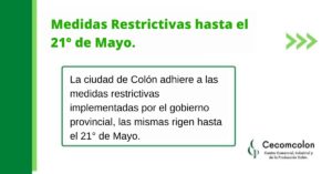 La ciudad de Colón adhiere a las medidas restrictivas reglamentadas por el gobierno provincial, vigentes hasta el 21 de mayo.