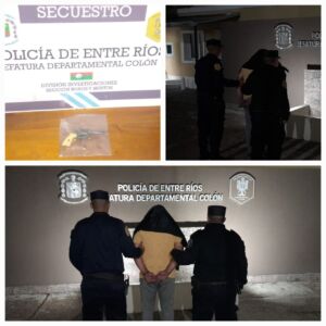 Por disposición de la Unidad Fiscal a cargo del Dr Alejandro Perroud, el ciudadano de 40 años de edad, fué trasladado en calidad de detenido a Jefatura Departamental por el delito de Abuso de Arma, destacando que en el lugar, Personal de la División Investigaciones procedió al secuestro de un revólver calibre .22, con cartuchos, en el lugar además intervino personal de la División Criminalística.