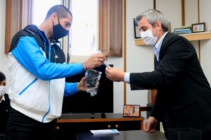 El conocido futbolista profesional Jonatan Maidana, actualmente defensor en la Primera División de River Plate, fue recibido este lunes por el Presidente Municipal José Luis Walser.