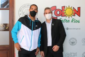 Maidana se encuentra en la zona con la familia y aprovechó el fin de semana para descansar y aprovechar de los atractivos de la Ciudad en su primera visita a Colón. El Intendente le hizo entrega de un recordatorio de su paso por Colón y charlaron unos minutos de su trabajo en River Plate y de su estadía en la Ciudad de Colón el fin de semana.