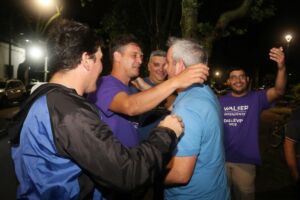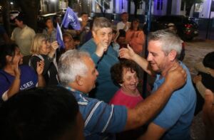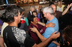 Tras conocerse el resultado pasadas las 21, José Luis Walser se trasladó el domingo hasta la plaza Washington para saludar a los vecinos que esperaban un mensaje del intendente reelecto. Estuvo acompañado por su familia, por la vice intendenta electa María de los Ángeles Dalleves y los legisladores electos, senador Ramiro Favre y diputado provincial Mauro Godein.