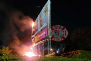 Según indicaron, se trata de dos menores de 14 y 15 años, domiciliados en el asentamiento “Ex Fapu”. Los jóvenes habrían realizado una quema de basura en la estructura que se encuentra debajo del cartel, lo que provocó que accidentalmente las llamas dañen la publicidad partidaria.