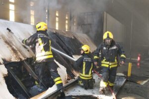 Los primeros datos indican que el siniestro – que se produjo aproximadamente a las 14:30 horas – se originó al prenderse fuego accidentalmente una plancha de fibra, con la que se hacen los acoplados térmicos.