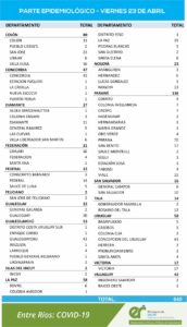 REPORTE EPIDEMIOLOGICO DE ENTRE RÍOS DEL VIERNES 23/04/2021