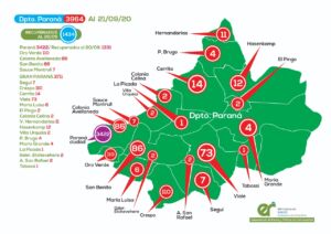 Compartimos el parte epidemiológico en detalles por localidad, correspondiente a este lunes donde se registraron 76 nuevos casos de coronavirus en Entre Ríos. Los que se distribuyen departamentalmente de la siguiente manera: