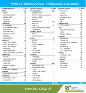 En virtud de los datos reportados este miércoles 16 de junio por el área de Vigilancia Epidemiológica del Ministerio de Salud, en Entre Ríos se han sumado 1.038 casos de Coronavirus. De ese modo, en la provincia son 100.404 los casos confirmados.