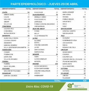 REPORTE EPIDEMIOLOGICO DE ENTRE RÍOS DEL JUEVES 29/04/2021