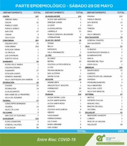REPORTE EPIDEMIOLOGICO DE ENTRE RÍOS DEL SÁBADO 29/05/2021