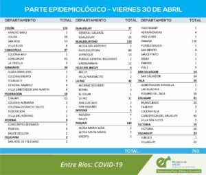 REPORTE EPIDEMIOLOGICO DE ENTRE RÍOS DEL VIERNES 30/04/2021