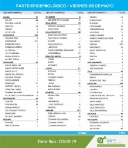 Ampliación del reporte epidemiológico de Entre Ríos del viernes 28/5/21