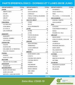 REPORTE EPIDEMIOLOGICO DE ENTRE RÍOS DEL DOMINGO 27 Y LUNES 28/06/2021