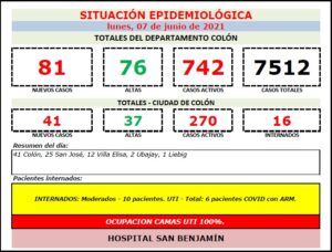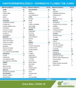 REPORTE EPIDEMIOLOGICO DE ENTRE RÍOS DEL DOMINGO 6 Y LUNES 7/06/2021