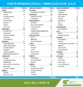 Ampliación del reporte epidemiológico de Entre Ríos del miércoles 14/07/21