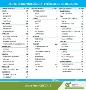 Ampliación del reporte epidemiológico de Entre Ríos del miércoles 23/06/21