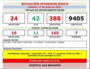 Ampliación del reporte epidemiológico de Entre Ríos del sábado 17/07/21