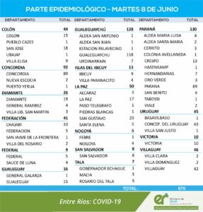 Ampliación del reporte epidemiológico de Entre Ríos del martes 8/6/21