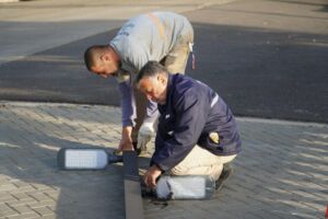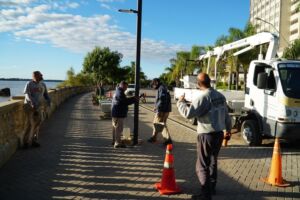 Personal municipal del área electrotecnia y automatización se encuentra realizando la instalación de las primeras de un total de 27 nuevas columnas de alumbrado LED de 45 Watts en la costanera Quirós. Esta obra incluye además la instalación del tendido subterráneo.