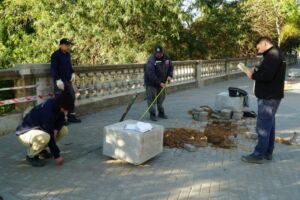 A su vez, y en forma simultánea, continúa el trabajo de reemplazo de balaustres y reparación de la balaustrada, también a cargo de personal municipal.