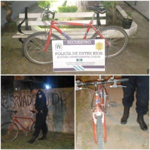 En la noche de hoy, siendo aproximadamente  las 21:00 horas, en respuesta a la colaboración ciudadana, el personal de la sala de comunicaciones y videovigilancia procedió a comisionar un móvil del comando radioeléctrico hacia las inmediaciones de las calles Gouchón y 1° Junta en la ciudad de Colón. En el mencionado lugar, se localizó una bicicleta de marca Multi Track R.A.P, de color rojo y rodado 26.