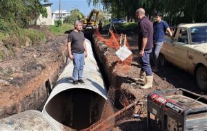 En su recorrido diario por las obras de la Ciudad de Colón, el Intendente José Luis Walser observó los avances de un importante trabajo de entubamiento que se está realizando en calle Evita de barrio Tiro Sur, entre Cot y Vieytes.