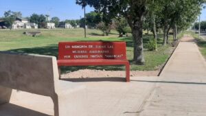 En este espacio pensado para homenajear a todas las mujeres de nuestro pueblo, se aprecia un hermoso mural en conmemoraciΓ³n al 8M y un Banco Rojo como simbolo de la lucha contra la violencia de genero. El proposito es continuar proyectando junto a instituciones y vecinos distintas manifestaciones artΓ­sticas en reconocimiento a la mujer.