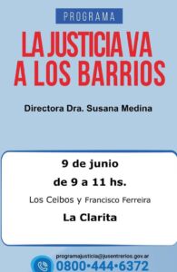 El próximo 9 de junio se llevará a cabo una nueva jornada de atención en el marco del Programa del Superior Tribunal de Justicia denominado “LA JUSTICIA VA A LOS BARRIOS”.