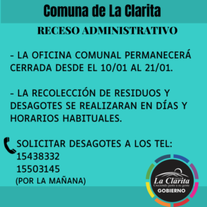 LA CLARITA – RECESO ADMINISTRATIVOMarcelo Benitez2022-01-10T15:42:00-03:00 Project Description 07/01/22 RECESO ADMINISTRATIVO Mas NoticiasColón (4838) Concepción Del Uruguay (321) Concordia (65) CORONAVIRUS (887) Deportes (572) Destacadas (14005) Economia (136) Liebig (1299) Nacional (460) Parana (603) Policiales (1337) Politica (747) Pronunciamiento (731) Provincial (1766) Regional (627) San José (2859) Sociales (22) Turismo (977) Ubajay (1216) Villa Elisa (2643)