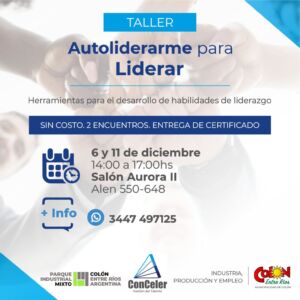 En el marco de las políticas de formación impulsadas por la Dirección de Industria, Producción y Empleo de la Municipalidad de Colón, se llevará a cabo el taller “Autoliderarme para Liderar”, destinado a personas que desempeñan roles de liderazgo en diversas organizaciones.