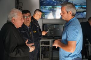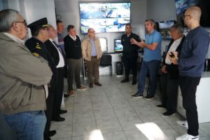 El Intendente de la Ciudad de Colón José Luis Walser y el jefe de la Policía Departamental Colón Comisario Mayor Danilo Parodi junto a la Asociación Amigos de la Policía mantuvieron una reunión en la sala de Comunicaciones y Videovigilancia en el acceso a la Ciudad.