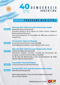 Con una charla del profesor Carlos Conte Grand, el miércoles 23 de noviembre se dará continuidad al Programa Municipal por los 40 años de la recuperación de la Democracia. También brindarán testimonios concejales electos en 1983.