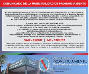 PRONUNCIAMIENTO – COMUNICADO ANTE LA NUEVA SITUACIÓNMarcelo Benitez2020-06-10T19:23:21-03:00 Project Description PRONUNCIAMIENTO 10/06/20 Nuevas medidas ante las circunstancias del Dpto Colón Mas NoticiasColón (4838) Concepción Del Uruguay (321) Concordia (65) CORONAVIRUS (887) Deportes (571) Destacadas (13980) Economia (136) Liebig (1287) Nacional (460) Parana (603) Policiales (1337) Politica (744) Pronunciamiento (731) Provincial (1766) Regional (627) San José (2853) Sociales (22) Turismo (974) Ubajay (1216) Villa Elisa (2636)
