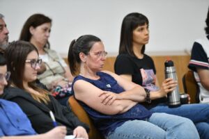 La actividad estuvo coordinada por la psicóloga Cielo Barell y el politólogo Ariel Parajón, quienes propusieron un intercambio con las y los participantes en torno a los desafíos que plantean las plataformas digitales y la importancia de construir miradas de cuidado frente a los consumos problemáticos en la actualidad.