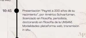 Este miércoles, a las 10.45, el Lic. Américo Schvartzman disertará en el marco del Coloquio Binacional “Puentes entre Francia y Entre Ríos – Siglos XIX-XXI”. Presentará parte de sus tesis sobre Alejo Peyret, revalorizándolo como filósofo.