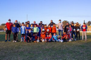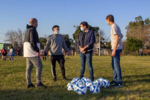 El Intendente Gustavo Bastian acompañado por el referente de la cartera, Luciano Bonito y el concejal Miguel Velzi, fue quien acercó 45 pelotas a Liverpool, Santa Rosa y San José