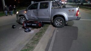 San José: Dos jóvenes resultaron lesionados en un choque entre una camioneta y una moto